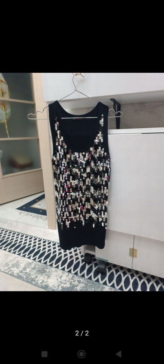 Siyah, v yaka, kısa kesim ve payetlerle süslenmiş bu kolsuz süveter, dar kesimiyle parti şıklığı sunar.✨