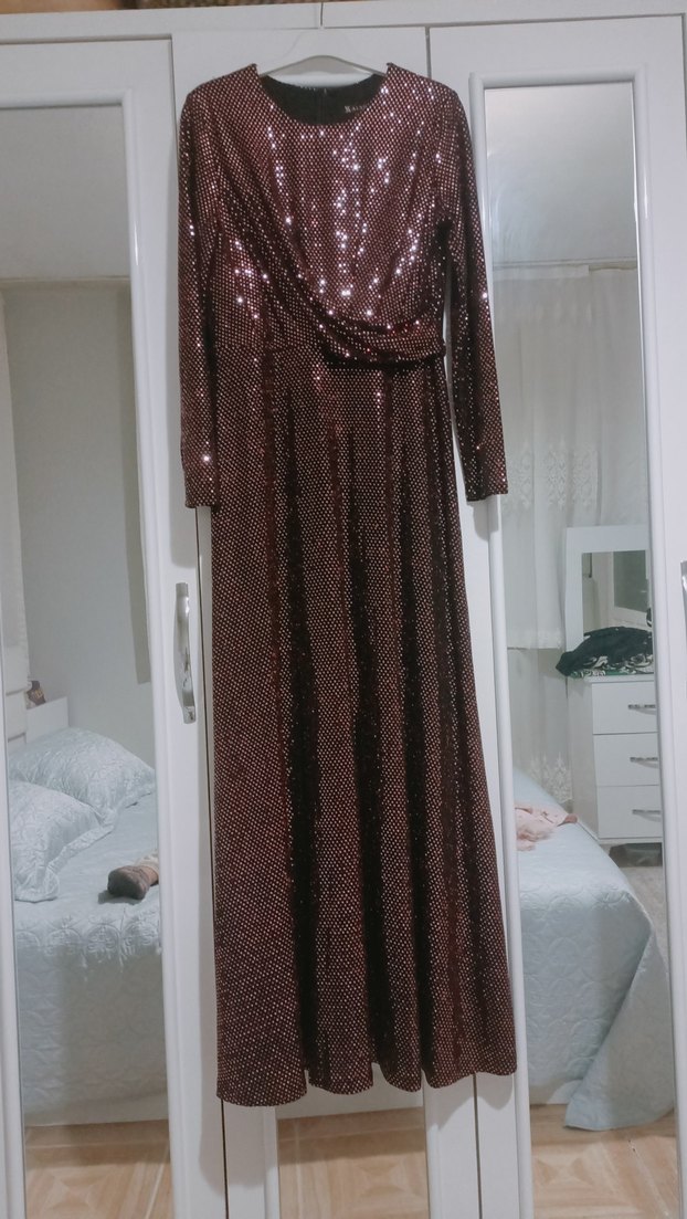 siyah uzun abiye elbise, yılan desenli ve drapeli tasarıma sahiptir. Uzun kollu, kayık yaka ve bol kesimdir, partiler için uygundur. payetlidir.uzunluğu 150 cm.eni 45 cm