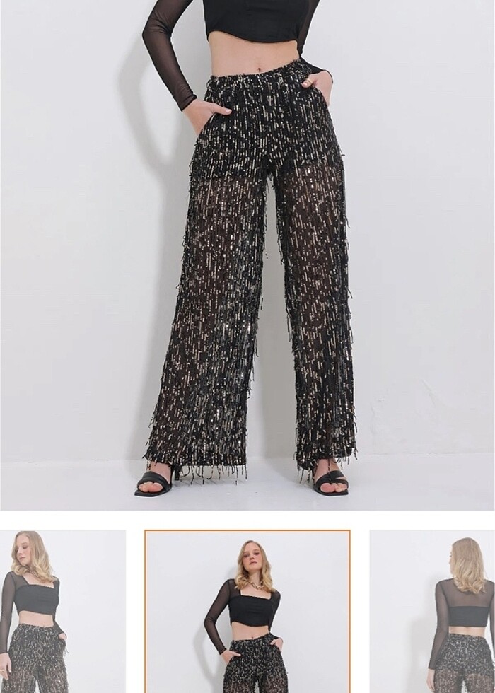 0 Polyester Boy 105 Cm - Bel 35 Cm Basen 41 Cm - İç Bacak 78 Cm Numune Bedeni: S/36/1 Modelin Ölçüleri: Boy: 1.72, Göğüs: 80, Bel: 60, Kalça: 92, Kilo:50, Beden: S/36/1 Stüdyo Çekimlerinde Renkler Işık Farklılığından Dolayı Değişiklik Gösterebilir. Rahat Kesimi İle Kolayca Fit Bir Görünüm Elde Edebileceğiniz Aynı Zamanda Trend Ve Şık Görünebileceğiniz Alaçatı Stili Cepli Beli Lastikli Payet İşlemeli Tül Palazzo Pantolon Sizlerle !!!