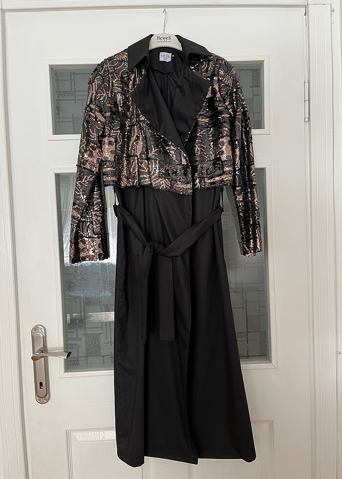 Ürün sadece bir iki defa giyildi,özel dikimdir. Kemeri vardır,o şekilde kullanılmaktadır. Ürün boyu 117 cm dir.