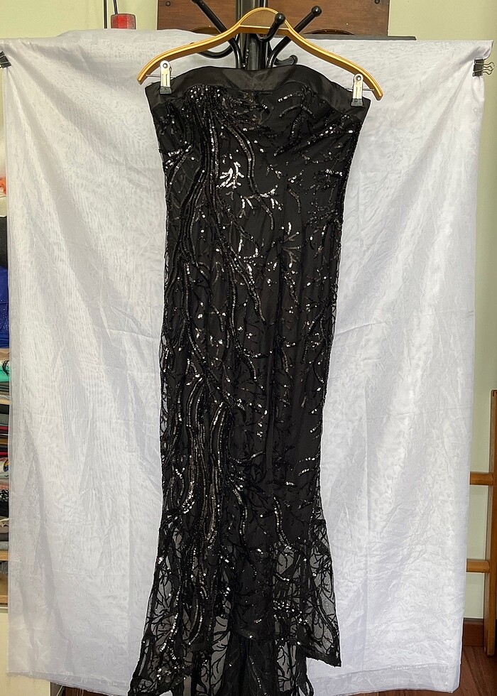 Payetli tül içi astarlı ve süngerli Abiye mezuniyet düğün davet için kullanılabilir önü kısa arkası uzun Aynı elbiseden iki adet bulunmaktadır