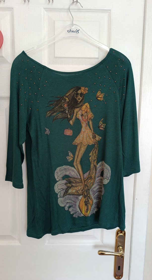 Turkuaz renkli, uzun kollu, bol kesim hamile bluzu. Bohem desenli ve payet işleme detaylıdır. Romantik akşamlar için uygundur.
