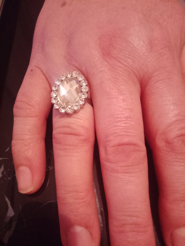 Vintage tarzda, parlak bej taş ve payet detaylı kadın yüzüğü, düğünler için uygun.