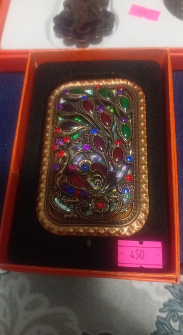Vintage tarzda, çok renkli payetlerle süslenmiş koyu desenli broş. Bohem görünümüyle düğünler için uygun, retro dokunuş katıyor.