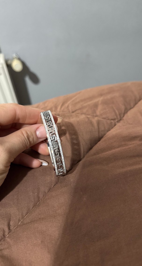 Kadın bileklik, payetli yılan desenli tasarımıyla bej ve gri tonlarında, Parisli karşı kültür stilini yansıtıyor. Günlük kullanım için uygundur.