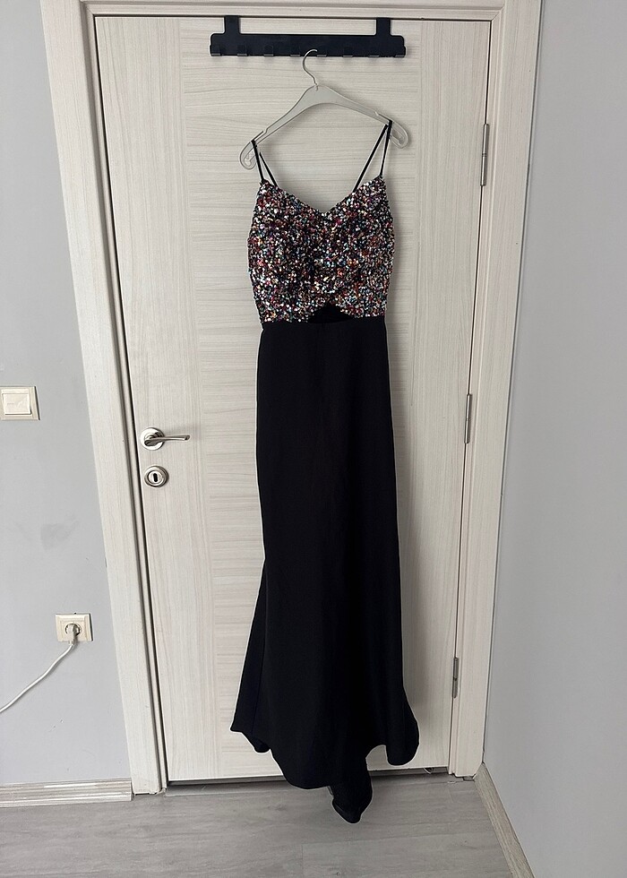Üstü pul payet işleme balık abiye m bedene uygundur