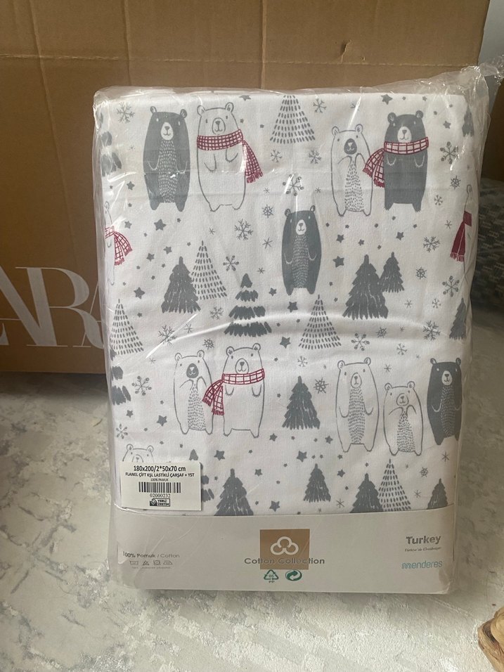 180-200 beyaz lastikli çarşaf ve 2 adet desenli yastık kılıfı