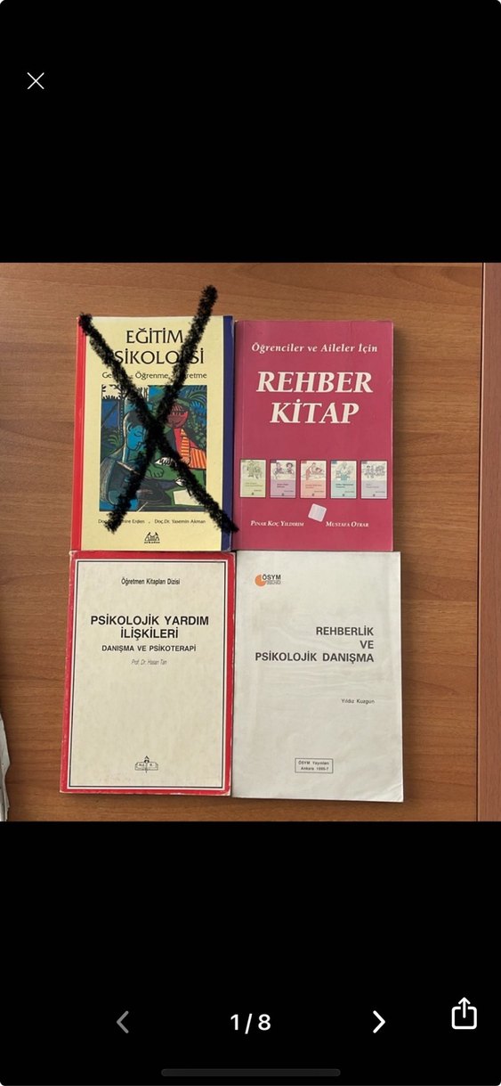 Üçünü birlikte satıyorum. Ayrı almak isterseniz yeni ilan açtırınız. Kitaplar ders kitabı ve / veya kaynak olarak kullanılabilir. Biraz yıpranmış olanları var ama kullanılabilir durumdalar. Eksik, yırtık yok. Merak ettiklerinizi sormaktan çekinmeyin lütfen Öğrenciler ve aileler için psikolojik yardım, rehberlik ve eğitimle ilgili kitap seti.