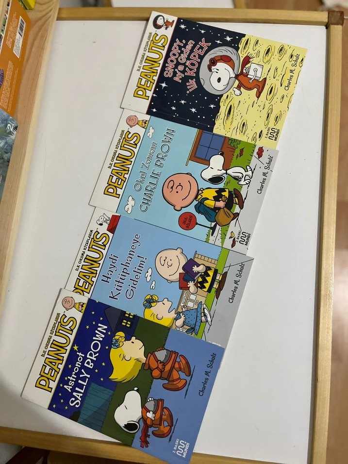 Snoopy ve Charlie Brown gibi karakterlerin yer aldığı Peanuts çocuk kitapları seti, eğlenceli ve öğretici hikayeler sunar.