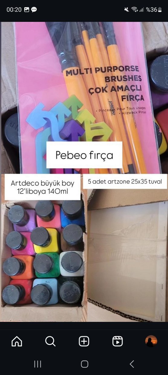 Pebeo çok amaçlı fırçalar, Artdeco büyük boy 12 renk 140ml boya ve 25x35 cm 5 adet Artzone tuval içerir. İNDİRİM OLURRR