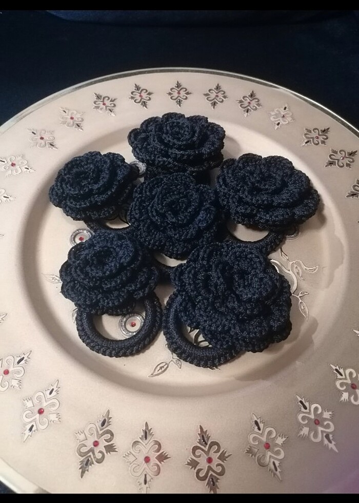polyester ip ile hazırlanmış gül motifli peçetelik istenilen renk ve adette yapılır. (6 lı ürün fiyatıdır)