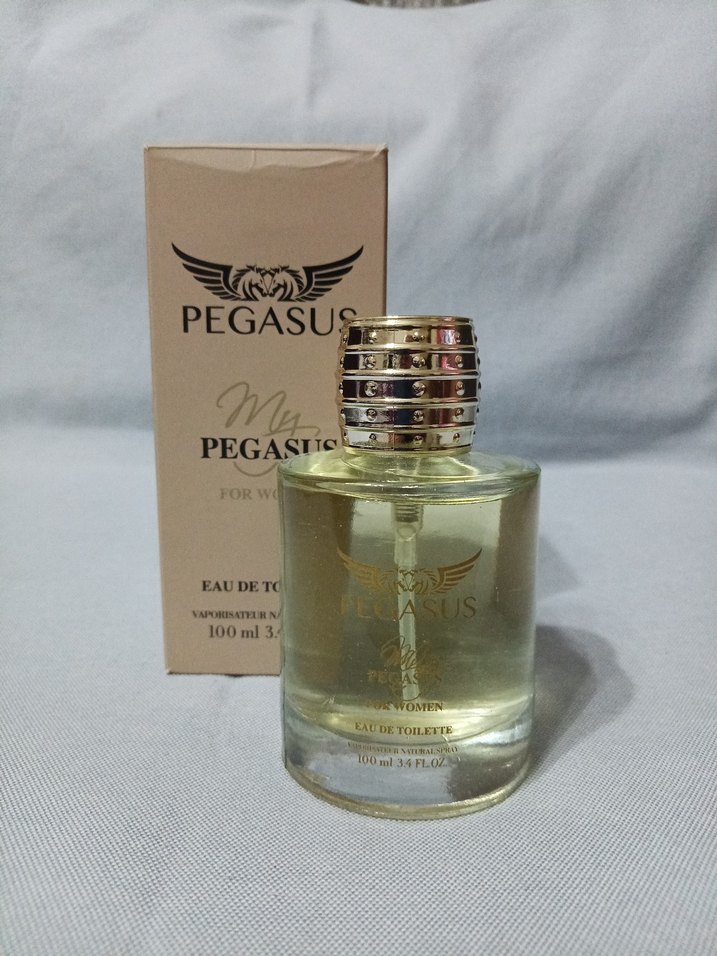 Pegasus kadınlar için 100 ml Eau de Toilette, ferah ve zarif bir koku sunar. Şişe, altın detaylı kapak ve şeffaf cam tasarıma sahiptir.