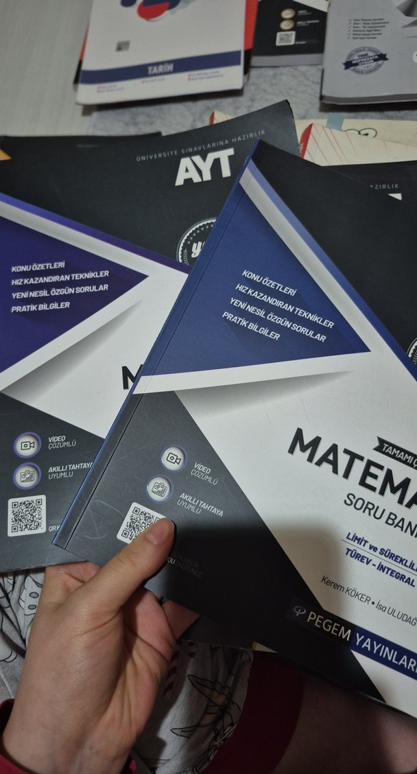 Pegem Yayınları AYT Matematik soru bankası, konu özetleri, kazanım teknikleri, yeni nesil sorular ve pratik bilgiler içerir. Video çözümleri vardır hiç çözülmedi 2 kitap pazarlık payı vardır