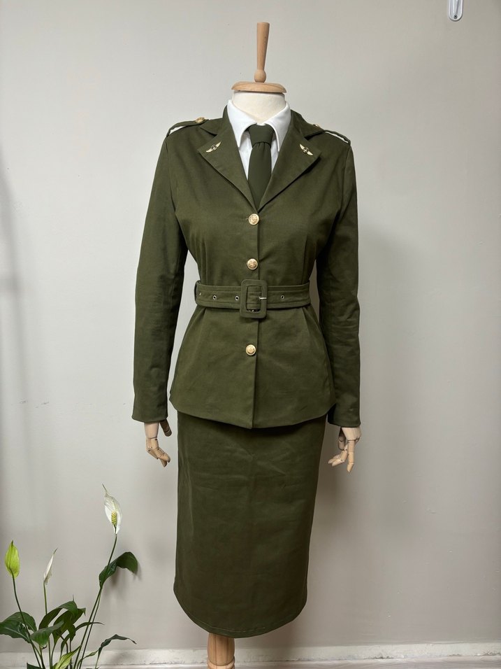 Kişiye özel dikim yapııyorum ❤️Kadınlar için regular fit, kemerli, notched lapel yakalı, uzun kollu, kamuflaj koyu haki renkte sentetik kumaştan ofis takım elbise.