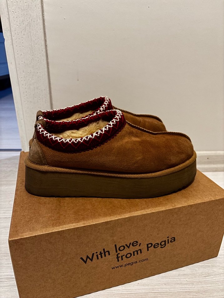 Kahverengi süet kadın terlikler, platform topuklu ve işlemeli detaylara sahip. İç kısmı kürklü olup sıcak ve rahat kullanım sağlar. Günlük kullanım için uygun bohem tarz.