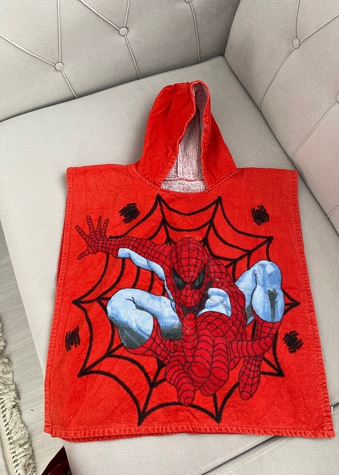 Pelerin görünümlü kapşonlu spiderman li bornoz