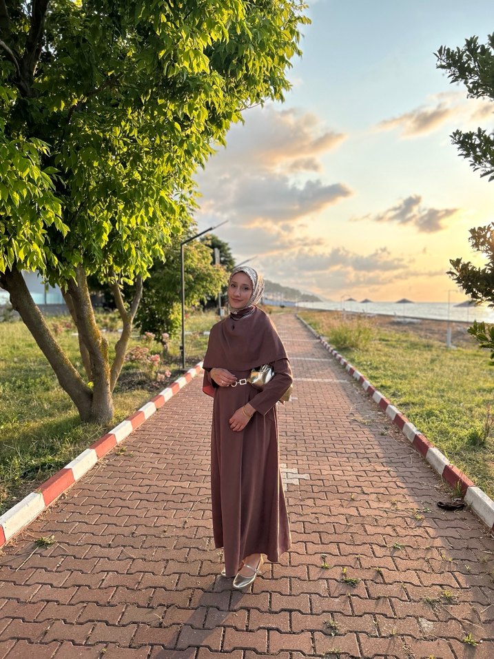 Pelerin detaylı tesettür elbise belden oturtmalı nuuwerstan alindı 2 defa giyildi hiçbir sorunu yok peleroni imi dikisle tutturulmuş istenirse cikartilır. fazlasıyla dikkat çeken bir tarzda.