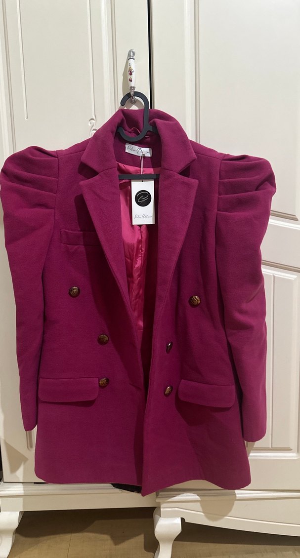 PELİN YILDIRIM MARKA. Fuşya Kadın Düğmeli Midi Blazer Ceket