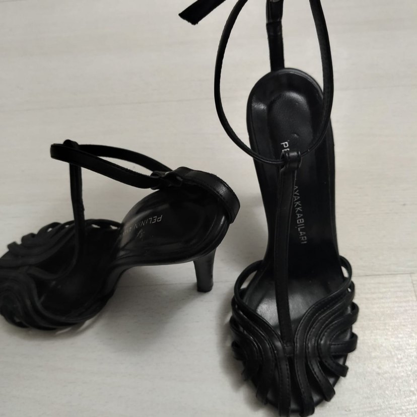 Pelinin ayakabıları Siyah Futiristik Topuklu Ayakkabı