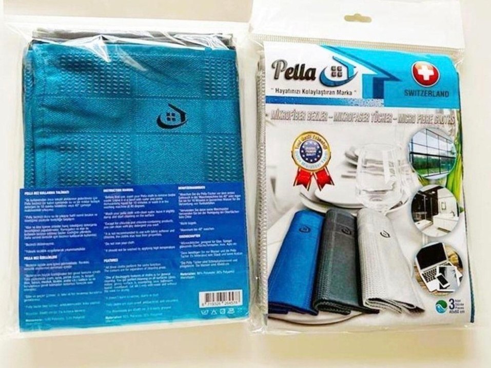 Pella mutfak bezi, mavi ve gri tonlarda desenli olarak sunulur. Yumuşak dokusu ve işlevsel tasarımıyla mutfakta kullanıma uygundur.