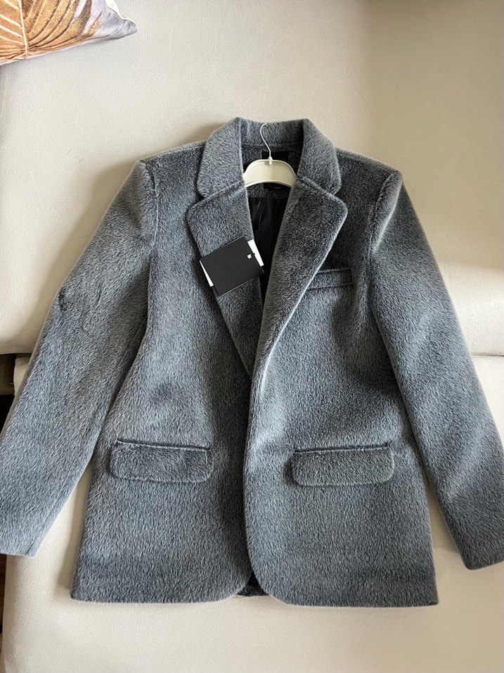 Peluş antrasit kemerli ceket