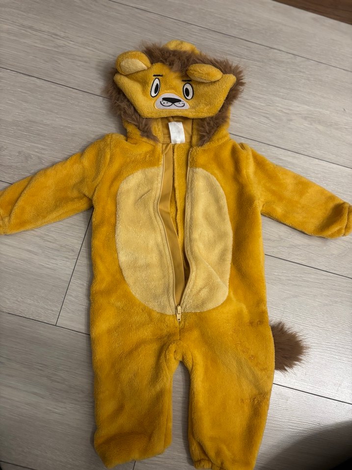 Sarı, yumuşak ve sıcak kumaştan yapılmış, kürklü detaylı ve aslan yüzü kapüşonlu bebek tulumu. İçi dışı polar. Kuyruğu cırtcırtlı. Küçük bi ütü izi var ilk aldığımda üzerine çarşaf koyup üyülemek istemiştim niye bilmiyorum giyildiğinde kenarda kalıyo o yüzden hiç belli olmuyor fotoğrafta mevcut. Görmekte zorlanabilirsiniz belli belirsiz çünkü. 3-6 ay befrni ama 1yaşa kadar kullanılabilir