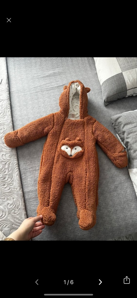 Kahverengi, yumuşak ve sıcak kumaştan yapılmış bebek tulumu. Kürk detaylı, önünde sevimli hayvan yüzü ve kulaklı kapüşon bulunur. Yurt dışından alındı 2 kere giyildi 6-9 ay yazıyor ama biz şişko bir bebek olmadığımız için 15 aya kadar kullandık