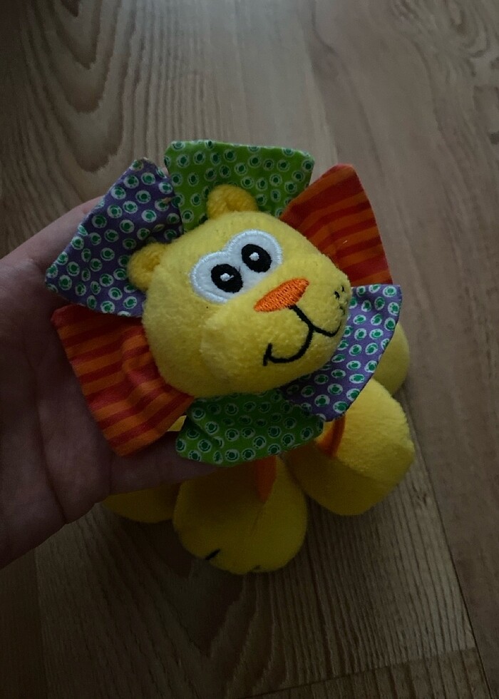 Peluş aslan çıngıraklık ve baş kısmındaki renkli parçalar hışırtılıdır. Bebek arabasına asılabılır aparatı vardır