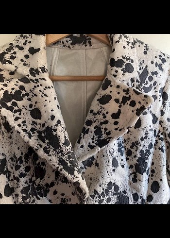 Peluş Detaylı Dağlama Desenli Uzun Kollu Kadın Blazer Ceket