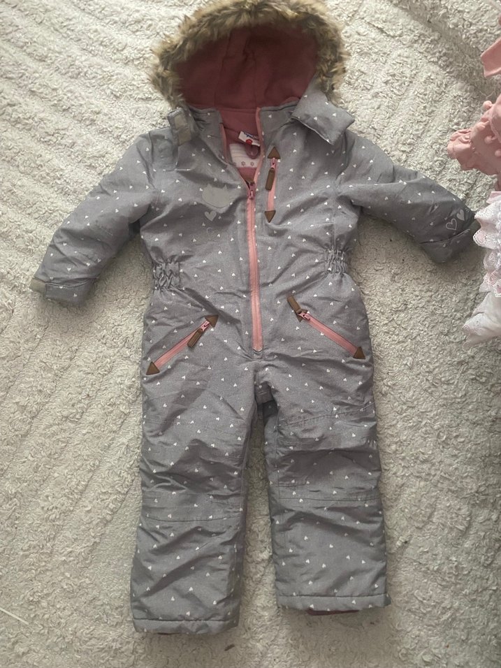Peluş detaylı kapüşonlu gri bebek kız kayak tulumu, çıtçıt yakalı ve fermuarlı ceplidir. Soğuk havalar için yumuşak ve sıcak kumaştan üretilmiştir. ❄️