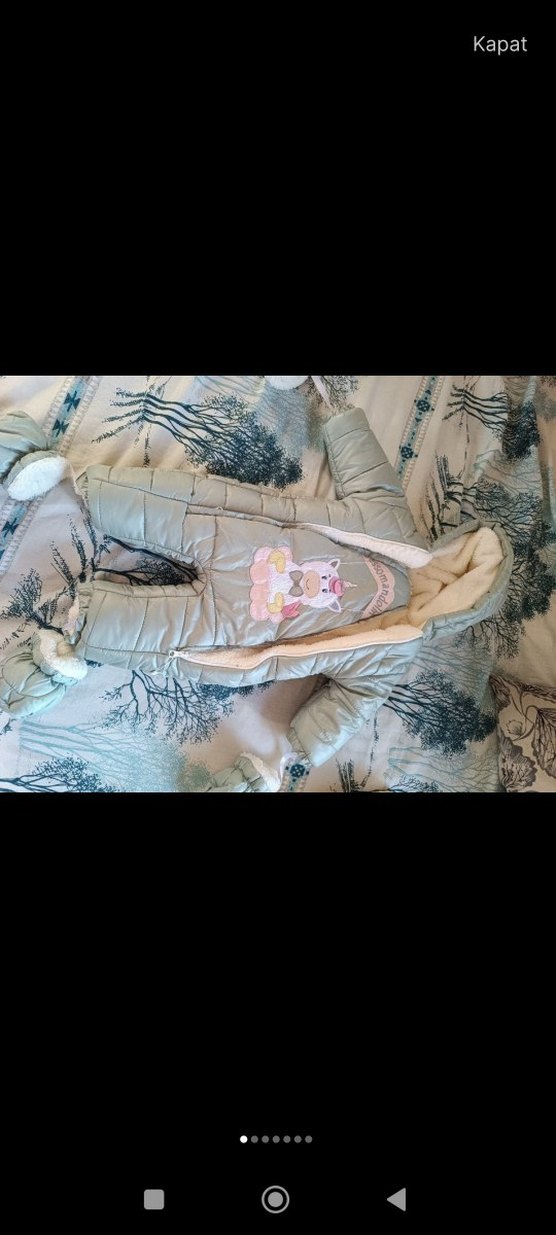 Peluş detaylı, baskılı gri bebek tulumu, yumuşak sentetik kumaştan yapılmıştır. Bohem tarzda, pastel renklidir ve sıcak tutar. ❄️
