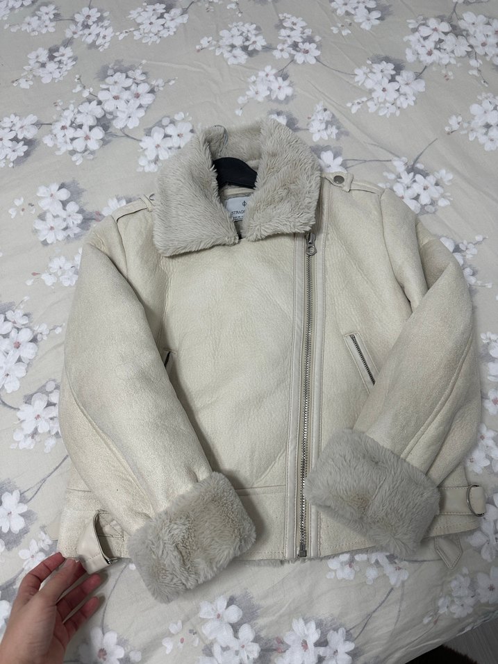 Krem peluş detaylı yaka ve manşetlere sahip, yumuşak ve sıcak kumaştan kadın ceket. Notlu yaka, uzun kollu ve rahat kesimdir. Günlük kullanıma uygundur.