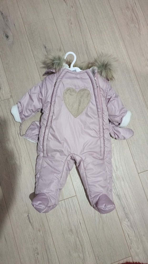 Peluş detaylı kapüşonlu, önünde yumuşak kalp patch bulunan pastel pembe bebek tulumu. Desensiz ve sıcak tutar. Ürün yeni alınıp hiç kullanılmamıştır. Alındığı fiyattan daha düşüğe koyulmuştur. 6-9 aylık