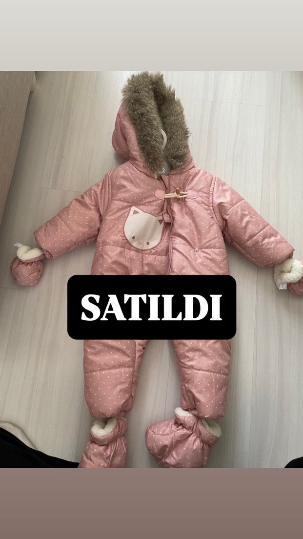 Peluş detaylı, kesik yaka pembe bebek tulumu, soğuk havalar için ideal ve çok çok az giyildi tertemiz.