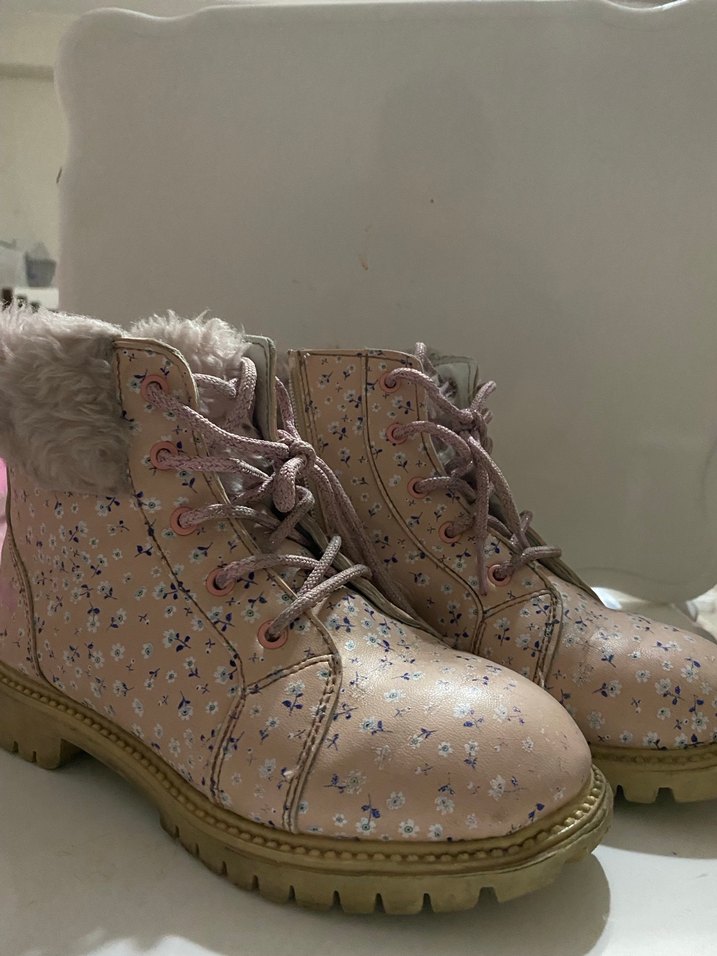 Peluş Detaylı Pembe Çiçekli Kız Botu