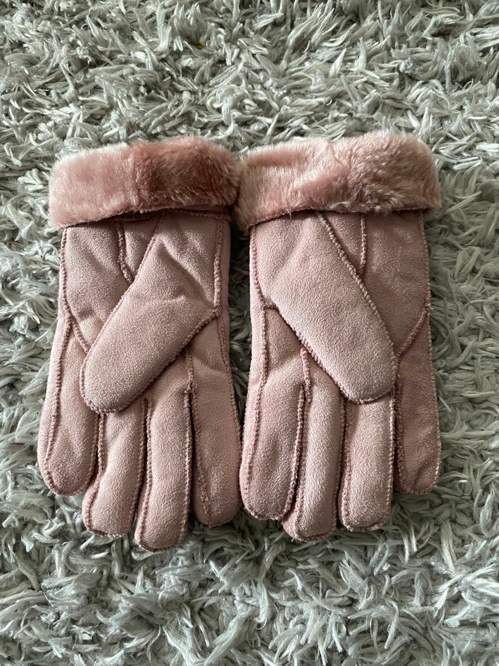 Peluş detaylı, yumuşak ve sıcak kumaştan yapılmış pembe kadın eldivenleri. Bohem tarzı ile ellerinizi rahat tutar.