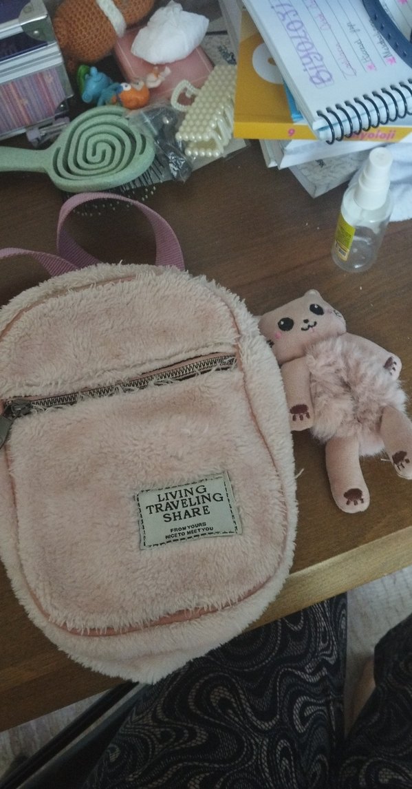 Peluş Detaylı Pembe kol çantası