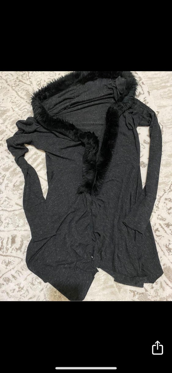 Peluş Detaylı Uzun Gri Kadın Hırka Y-LONDON L