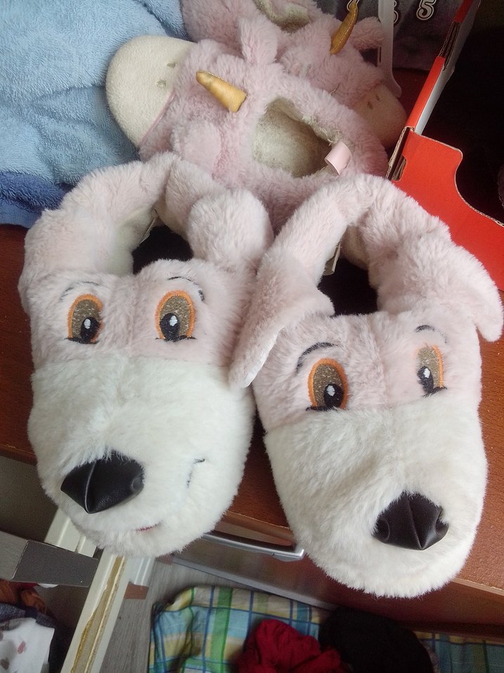 Kızlar için pastel pembe ev terlikleri, nakışlı gözler ve yumuşak kürk detaylara sahip, sıcak peluş kumaştan yapılmıştır. Eğlenceli pop kültür tarzı var.