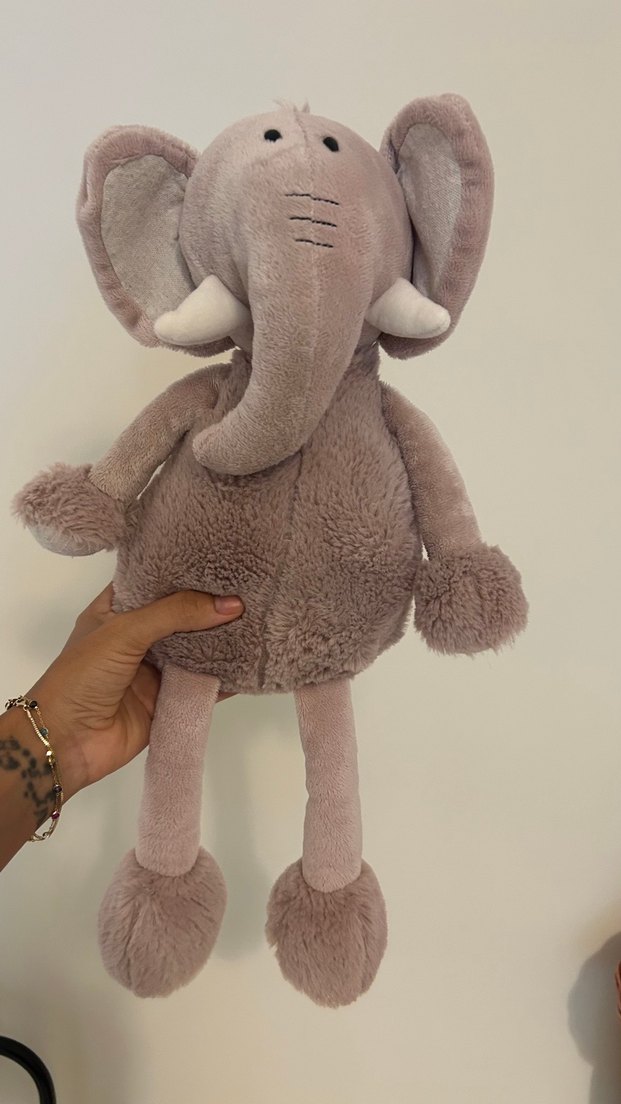 Yumuşak ve kucaklanabilir uzun bacaklı, büyük kulaklı gri fil peluş oyuncak. Yepyeni tertemiz minisodan almıştık