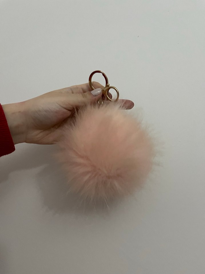 Pembe pastel yumuşak peluş detaylı, altın halka aksesuarı olan kadın anahtarlık. Hiç kullanılmadı.