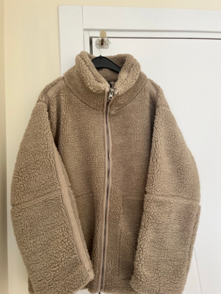 Yüksek yakalı, bol kesim ve uzun kollu kahverengi peluş ceket. Modaaksa ürünüdür içi astarlıdır hiçbir sıkıntısı yok
