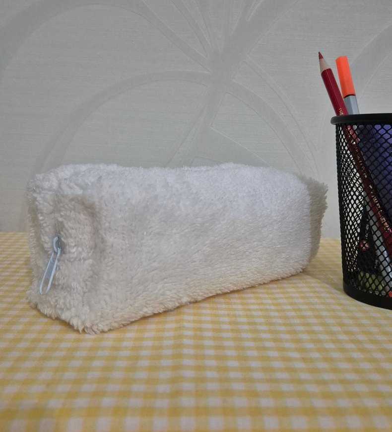 Astarlı peluş kalemlik. 18×7×7cm ölçülerindedir.