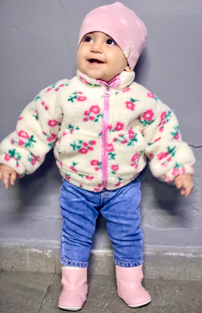 Peluş detaylı, kapüşonlu bebek kız montu, pastel tonlarda çiçek desenli, sıcak ve rahat tutar. Mont civil , şapka wakiki , pantolon hm pantolon 4-6 aylık mont ise 6-9