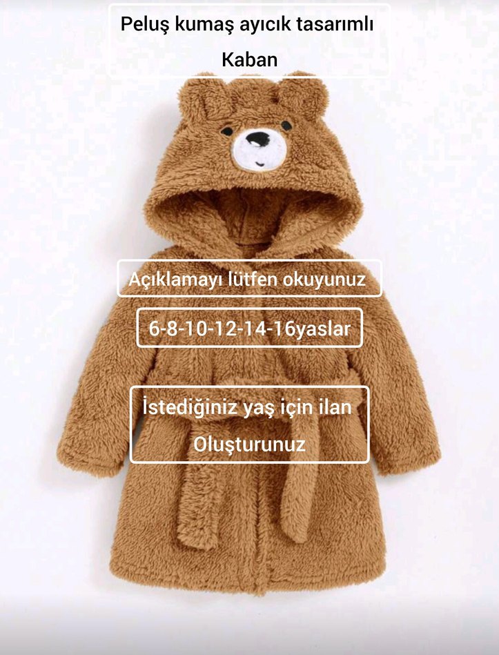ürün: tam kışlık kız ve erkek çocukların kullanılabileceği soğuğa ve rüzgara dayanıklı sıcak tutacak peluş kaban kumaş: hem rengi ile hem kalınlığı ile hem dokunuşuyla çok güzel bir hoş bir kumaştan üretilmiştir çift taraflı welsoft kumaştır ekstra kalın ve ekstra sıcak tutan bir kumaştır üretimi kendi modem tarafından yapılmaktadır taktiklerinden sakınınız 6 8 10 12 14 16 yaşlarında üretim yapılmaktadır resimleriniz sonunda ölçüm tablosu bulunmaktadır eğer çocuğunuz farklı ölçülere sahipse vereceğiniz özel ölçülerde üretimde sağlamaktayız hangi yaş istiyorsanız yorumlarda belirtin ve yeni ilan oluşturun iade ve değişimdee yardımcı olmaktayım