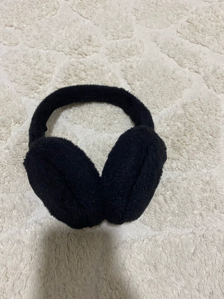 Yumuşak, peluş kulaklık kapaklarına ve ayarlanabilir bantlı siyah kulaklık.