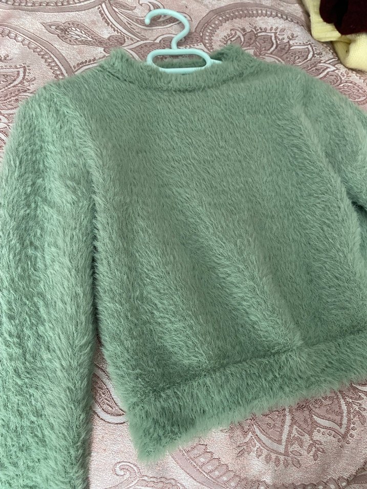 Peluş dokulu, kısa ve dar kesim kazak, balıkçı yaka ve uzun kolludur. Pastel bej rengi ile rahat sokak stiline uygundur.