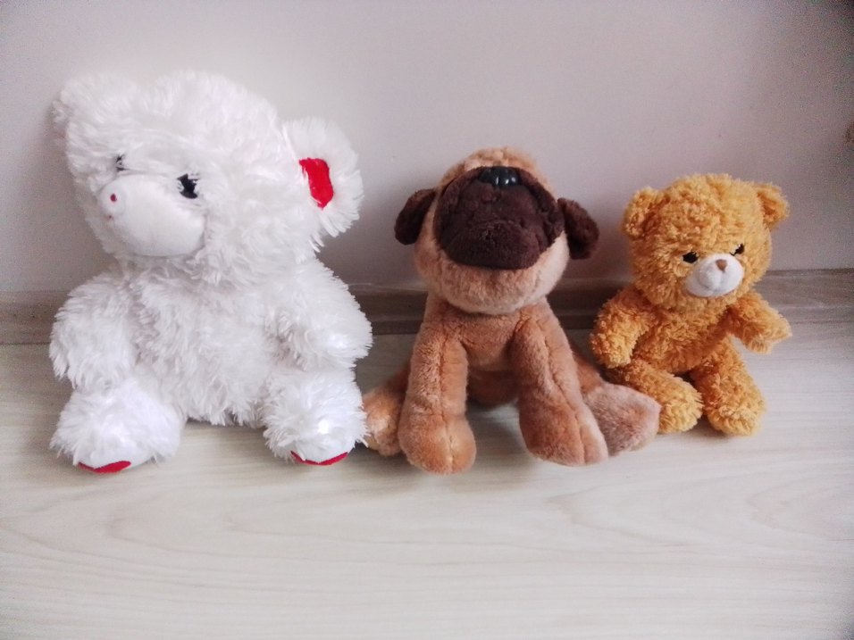 Yumuşak beyaz peluş ayıcık, patılarında renkli detaylar bulunur. karışık peluş oyuncak