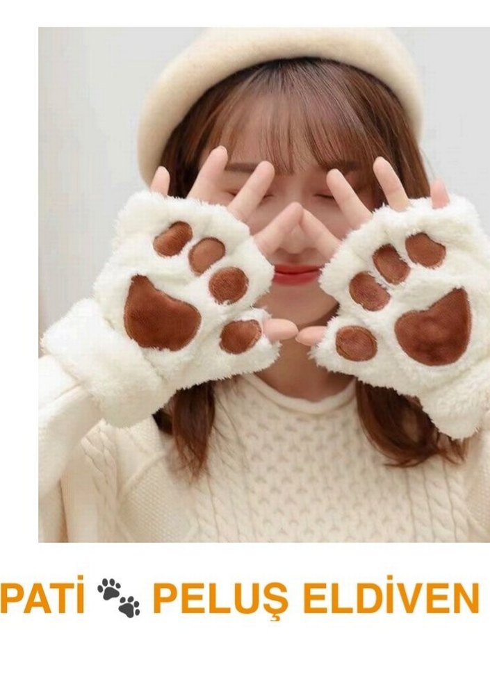 Peluş kumaştan, hayvan pati detayı olan sıcak tutan rahat eldivenler. Sokak stiline uygun, şık ve rahat.Toptan satısımız vardır.