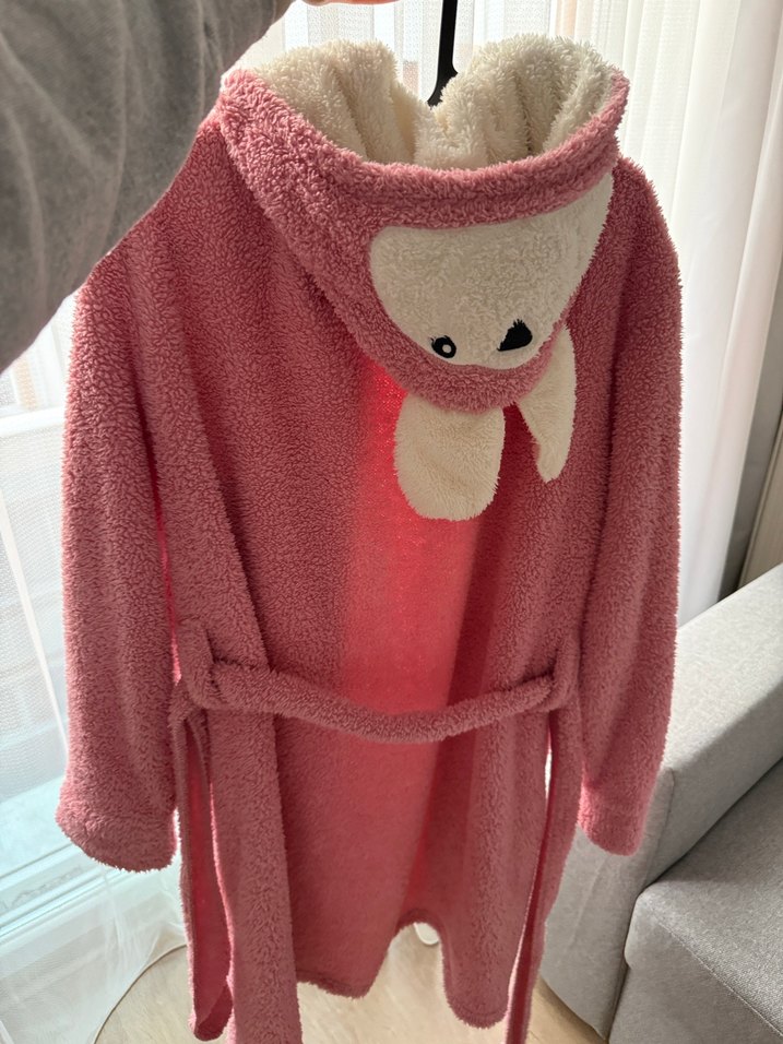 Peluş Pembe Kapüşonlu Bornoz/sabahlık